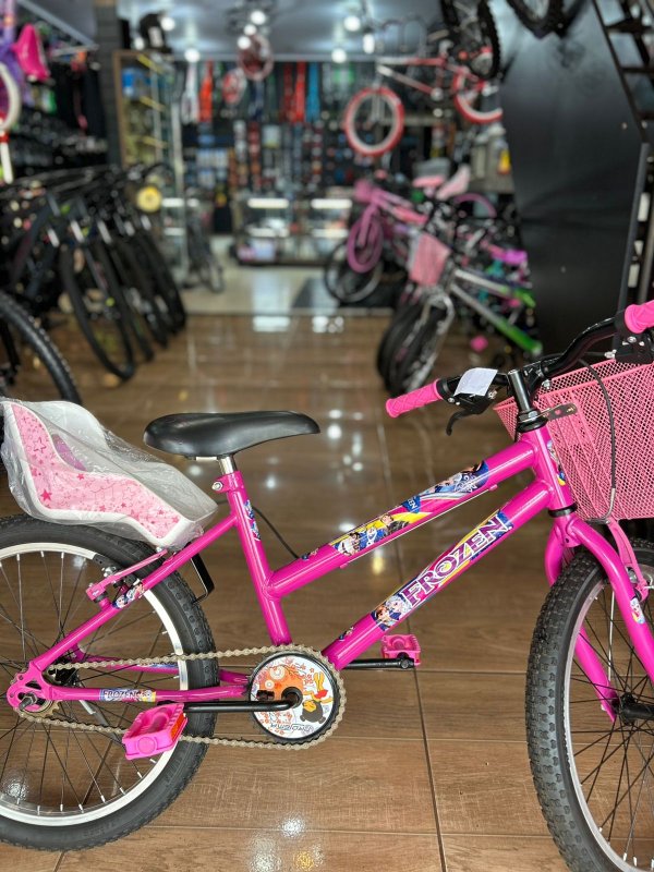 BICICLETA ARO 20 FEMININA FROZEN (ROSA) C/ CADEIRINHA DE BONECA