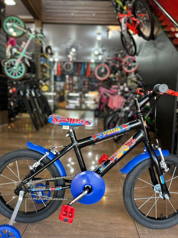 BICICLETA ARO 16 HOMEM-ARANHA (PRETA C/ AZUL)