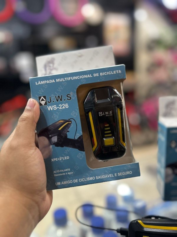 LANTERNA DIANTEIRA RECARREGAVÉL E COM BUZINA